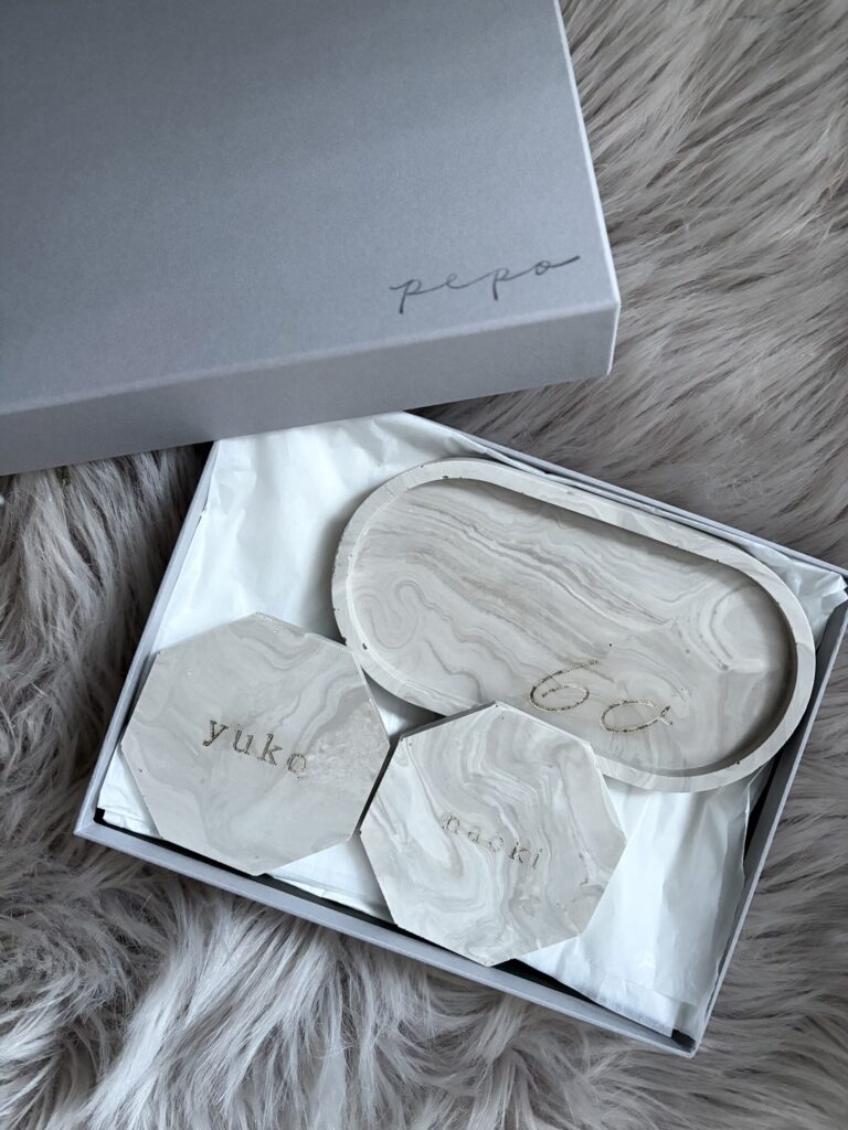 コースターやトレーに名前やロゴ等を入れて