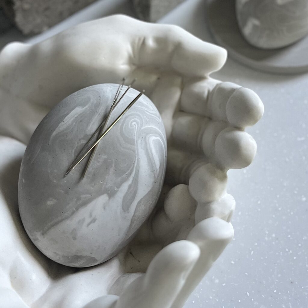デスク回りや針仕事の傍らにそっと置いて頂きたいなと作りました。