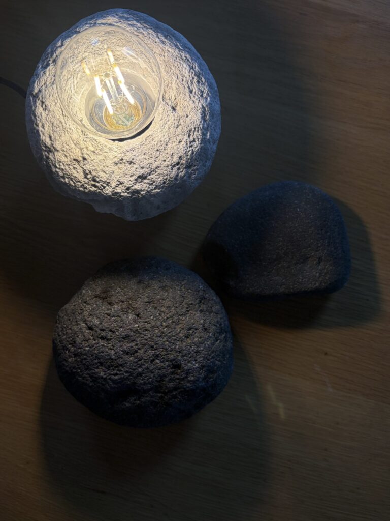 洞爺の石から型どりした、ごつごつずっしりとした2段タイプ。